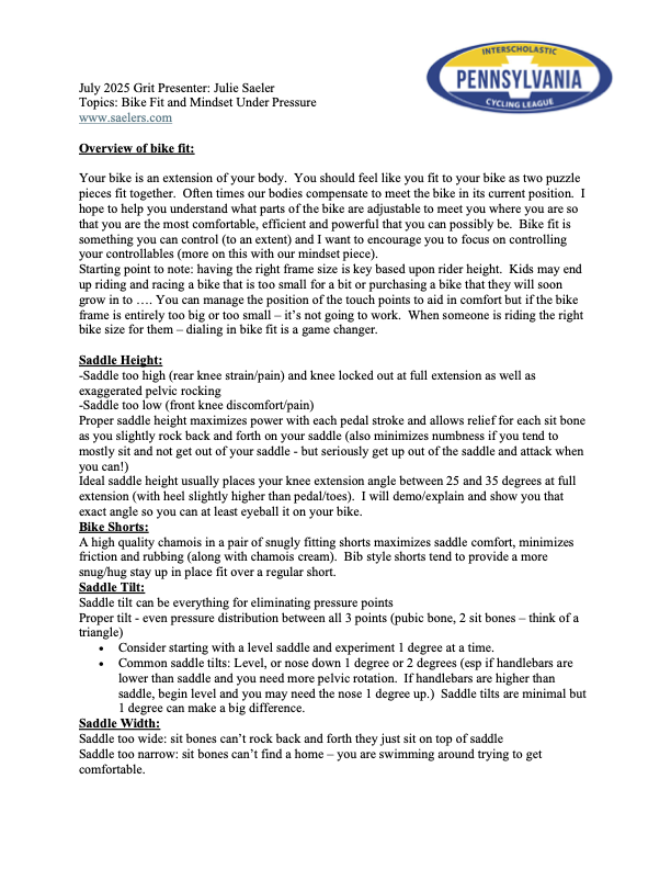 A well-fitted bike should feel like an extension of your body. Your enjoyment and performance on the bike are deeply connected to how good you feel while riding. Julie will guide us through how to dial in your fit β one of the most important controllables in your cycling experience.