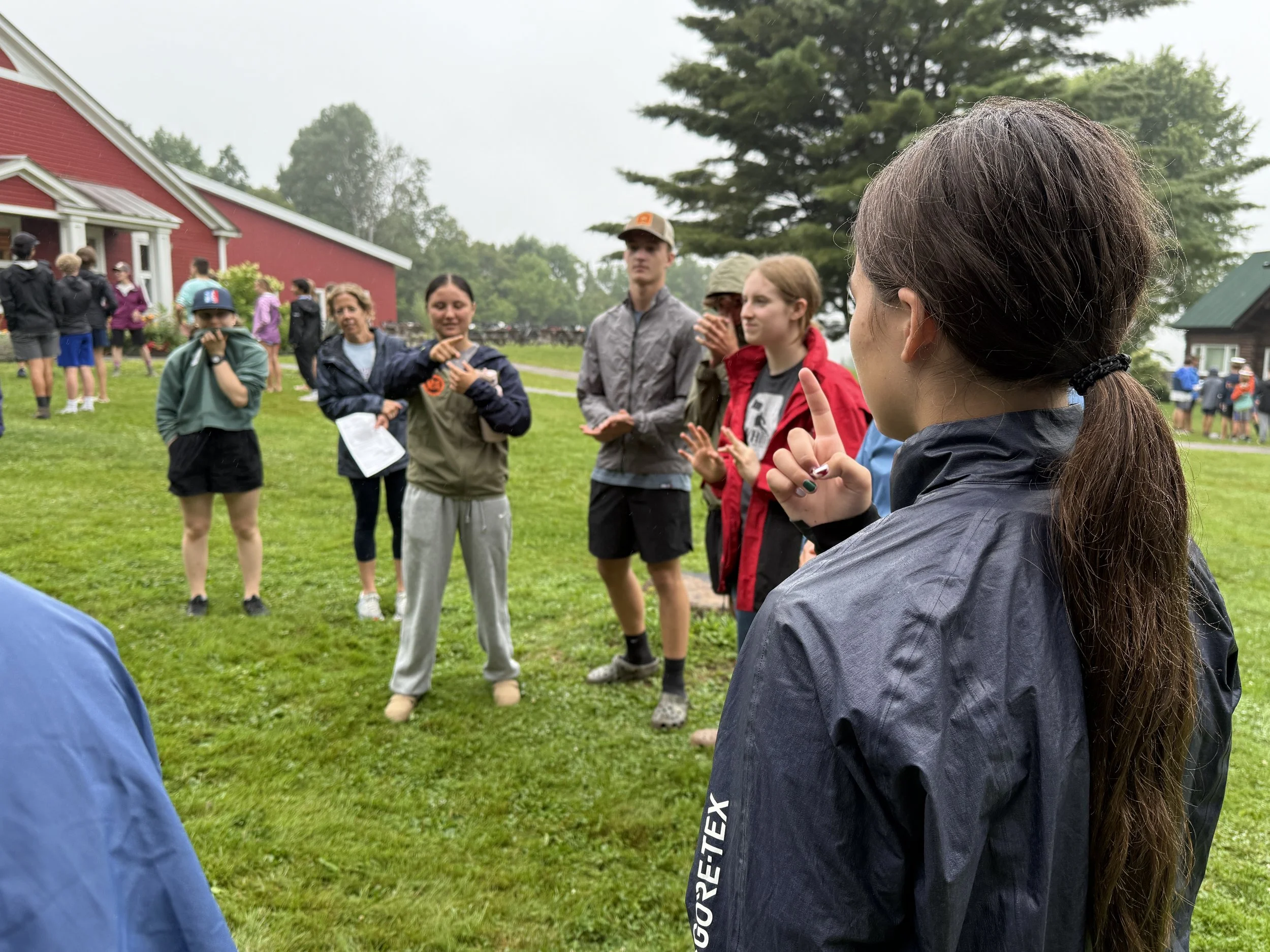 Camp Activities Director, Denise, gives the students some instructions prior to their first set of instructions. We sent them off for their rain coats shortly after this.